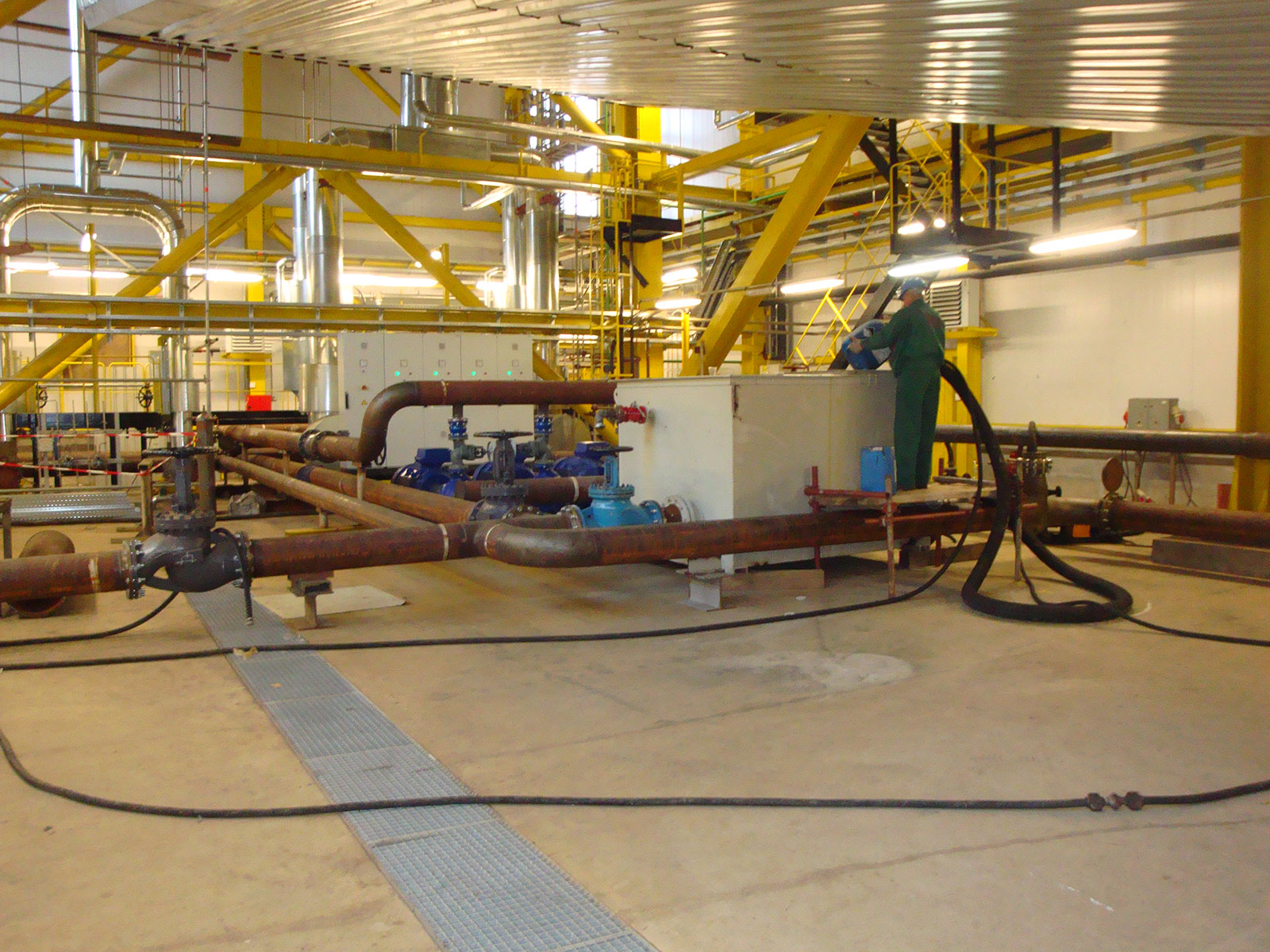 The plant surface required thorough cleaning to remove accumulated impurities such as corrosion, weld slag, dust, and burn residues—particles that, once detached from the surface, could potentially damage equipment and systems downstream of the boiler's steam output.